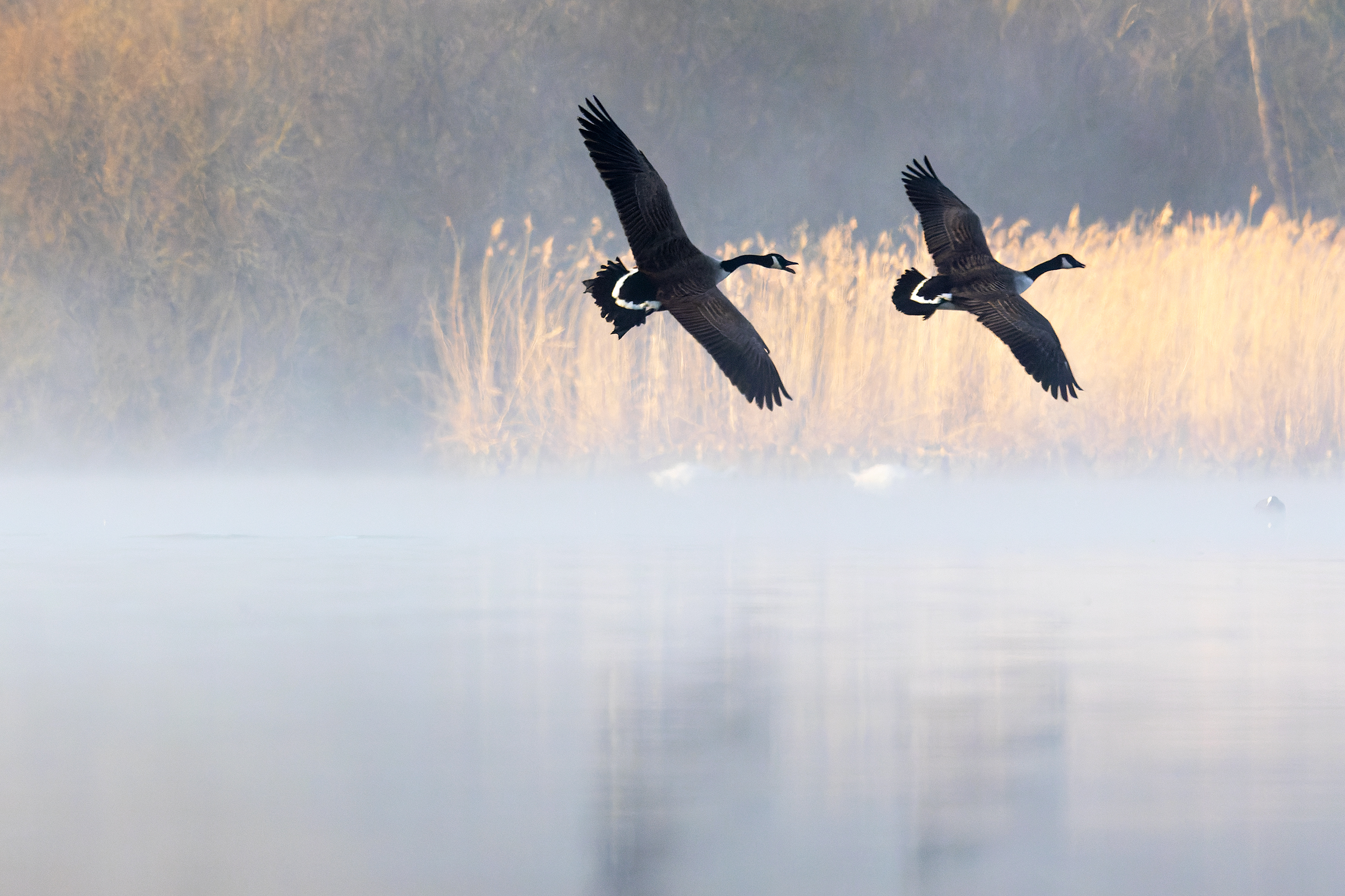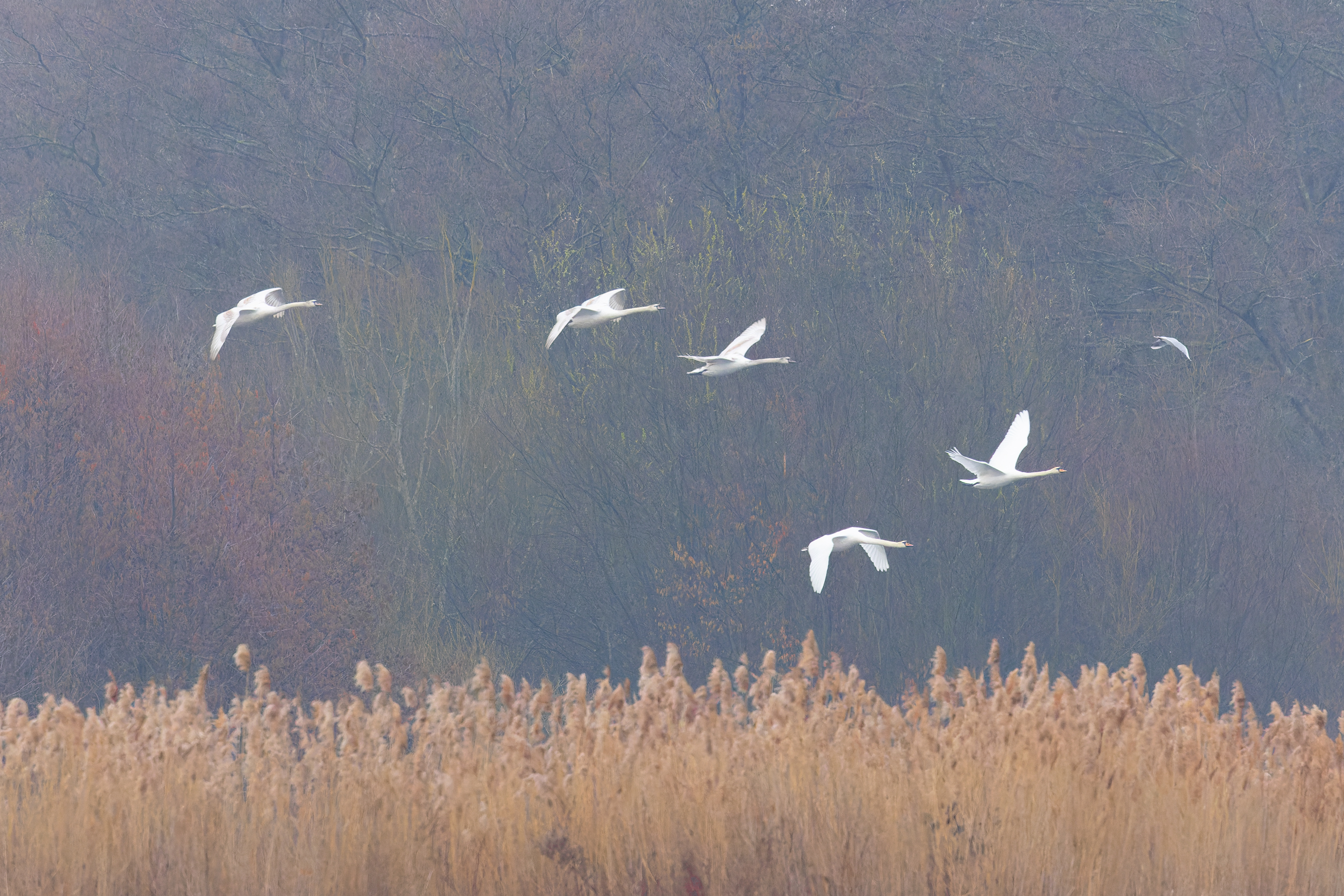 Departing Swans, Fleet Pond