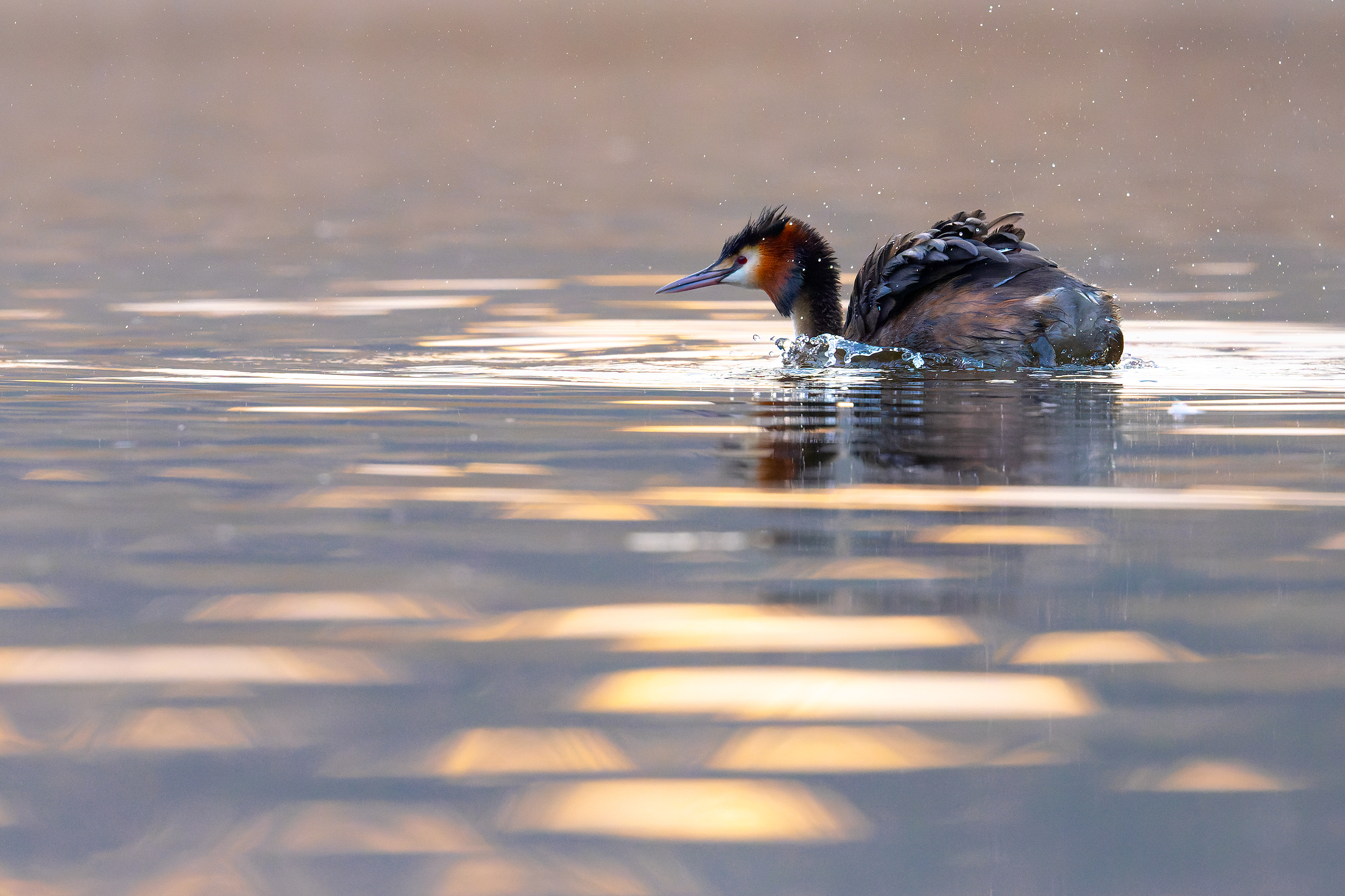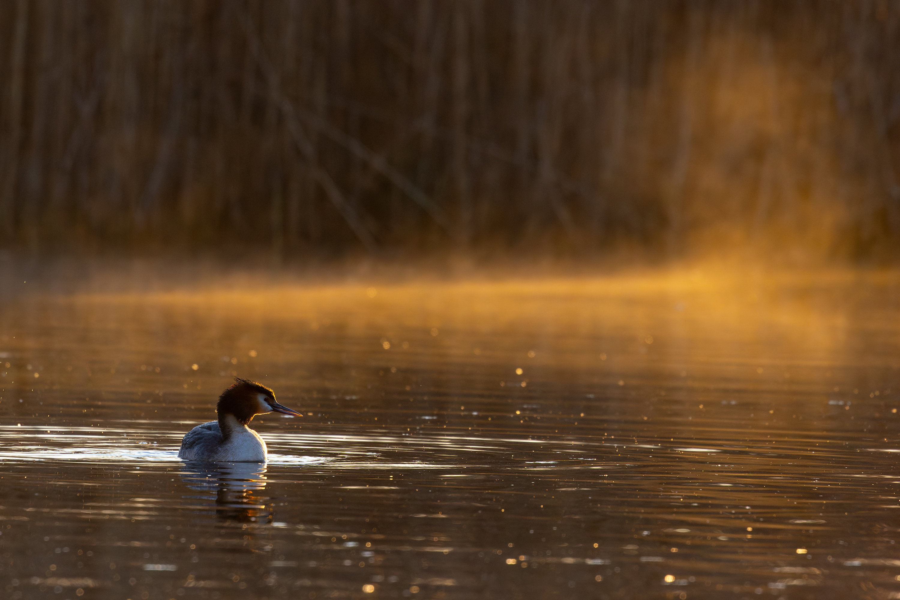Great Crested Grebe Sunrise, Fleet Pond